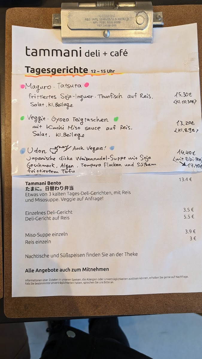 Welcome to tammani · japanese deli cafe, a hidden gem nestled in Düsseldorf at Bilker Allee 1. This cozy establishment combines traditional Japanese cuisine with a warm, inviting atmosphere. The menu offers an array of daily specials, showcasing authentic dishes prepared with high-quality, fresh ingredients. Customers rave about the Matcha Cheesecake—perfectly balanced in sweetness—as well as the rich and savory udon broth that speaks to its authenticity.